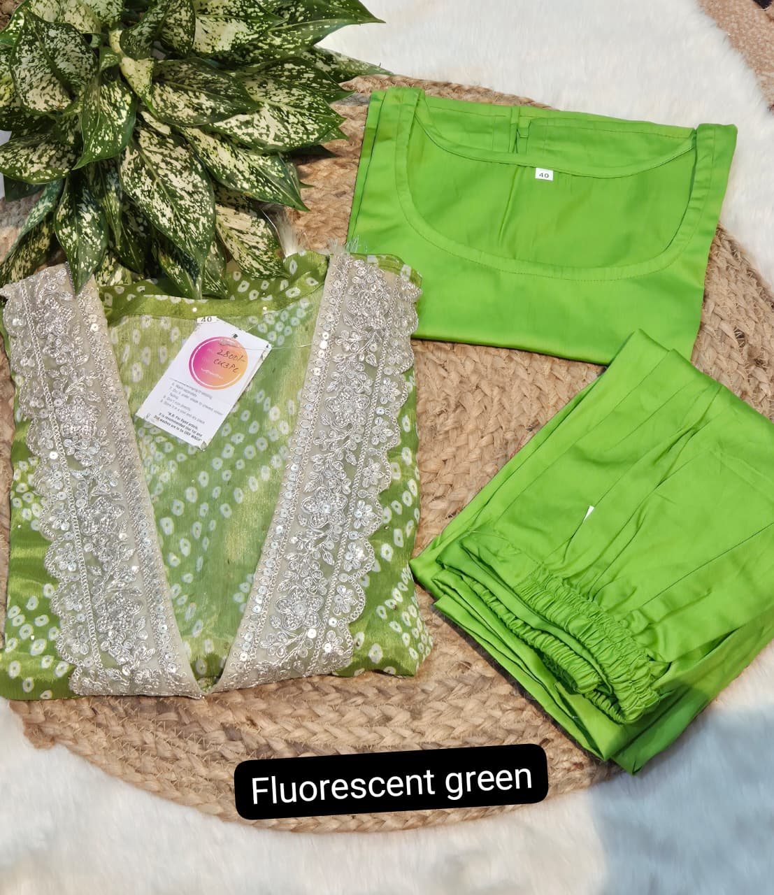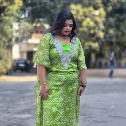 Be the first to review “Bandhani print kaftan 3pc set”